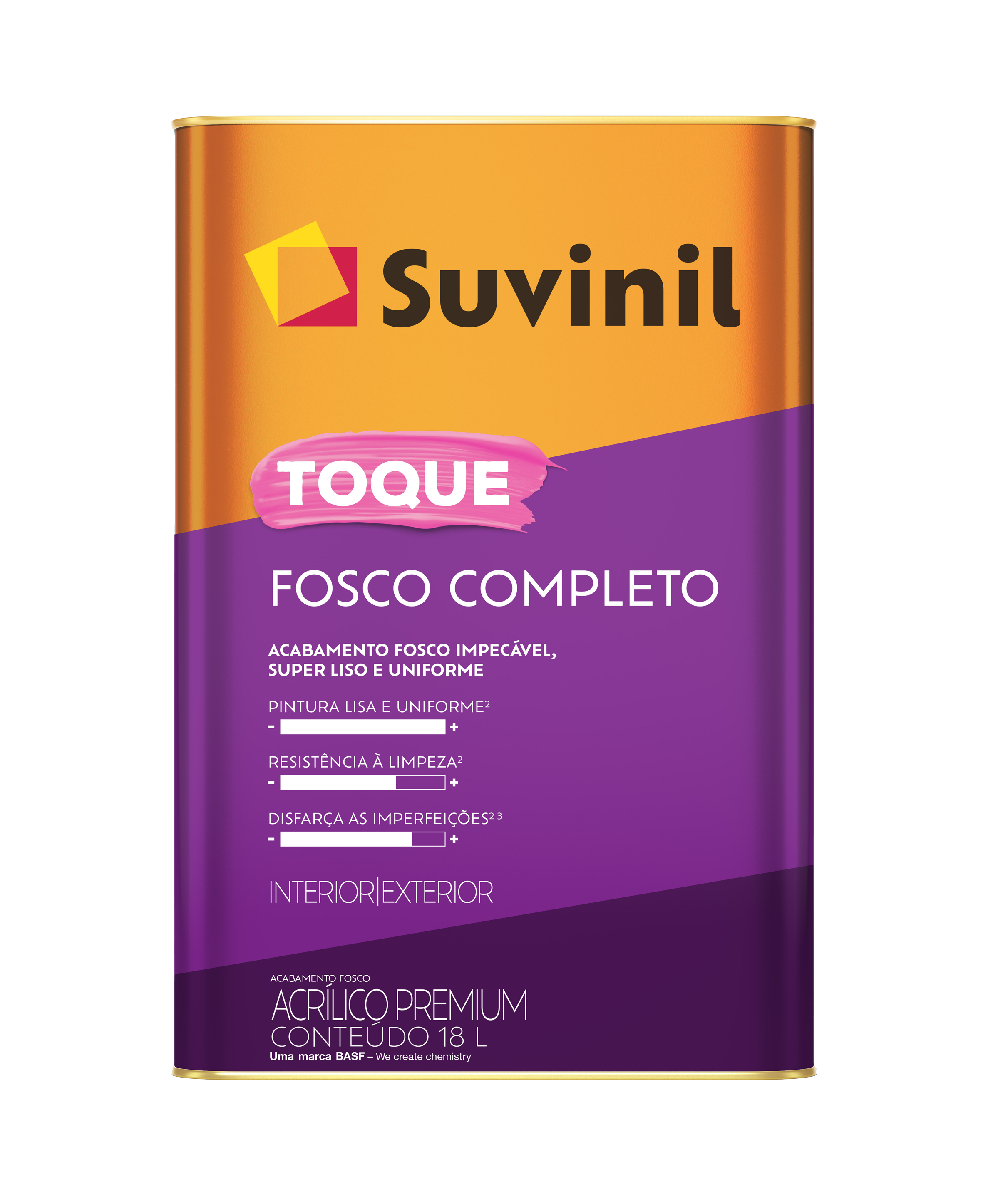 QUIERO ESTE PRODUCTO"La pintura látex Suvinil Toque Mate Completo es perfecta para lograr un acabado mate impecable, súper liso y uniforme en las paredes interiores de tu hogar. En la escala de beneficios, entrega máximo desempeño en pintura lisa y uniforme, además de buena resistencia a la limpieza y disimula imperfecciones